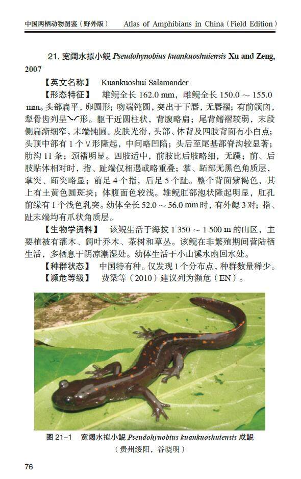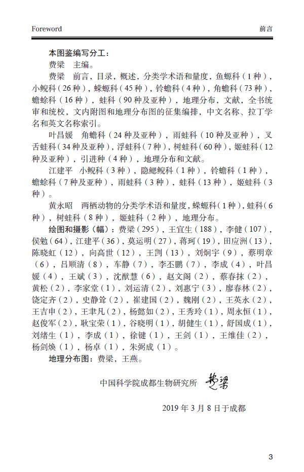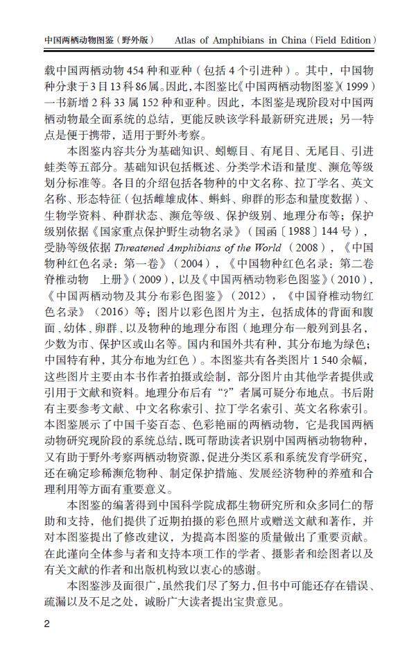 本图鉴共记载中国两栖动物454种和亚种,是目前国内记录两栖动物zui全的专著。